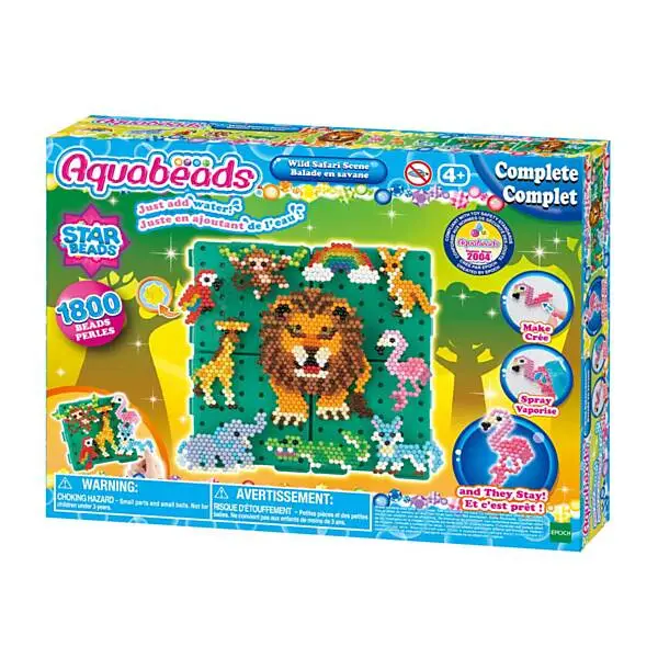 Enorm knutselplezier met de Aquabeads Mega knutselbox “Safari”. En zo werkt het: Motief leggen, met water besproeien, de flip tray omklappen en de creatie laten drogen. Al na het omklappen is de knutselplaat weer vrij voor nieuwe motieven. Meer dan 30 verschillende creaties zijn mogelijk met de motiefsjablonen. Met de Safari speelscenerie en de creaties die in poten zijn gestoken, kun je in een avontuurlijke wereld onderdompelen en met de creaties spelen.