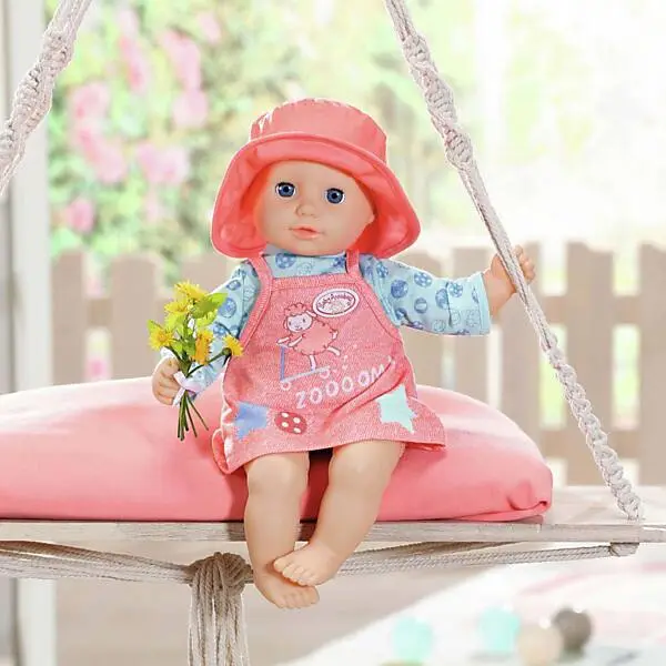 Deze Baby Annabell set bestaat uit een jurk en zonnehoed. Inclusief kledinghanger. Exclusief pop.