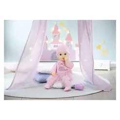 Als je deze pop van 30 cm op haar rug legt, dan sluit ze haar slaperige ogen. Haar lichaam met zachte vulling is perfect om uren mee te knuffelen en spelen. Ze heeft ook een flesje bij zich voor een eerste rollenspel.
