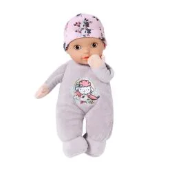 Het speelpakje van deze stoffen pop van 30 cm is subtiel lila van kleur en versierd met schattige applicaties. Door de zachte vulling is de pop perfect om uren mee te knuffelen. En als er druppels melk op het speelpakje terechtkomen, kan de pop heel eenvoudig op 30 °C worden gewassen nadat de geluidsmodule is verwijderd.