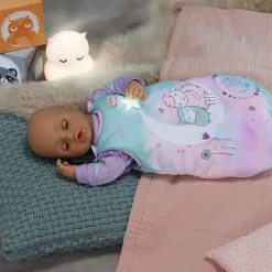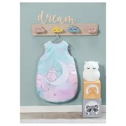 De bandjes van de slaapzak zijn makkelijk te openen en sluiten met behulp van klittenband, zodat mama en papa de kleine droomster goed kunnen instoppen in het zachte omhulsel.