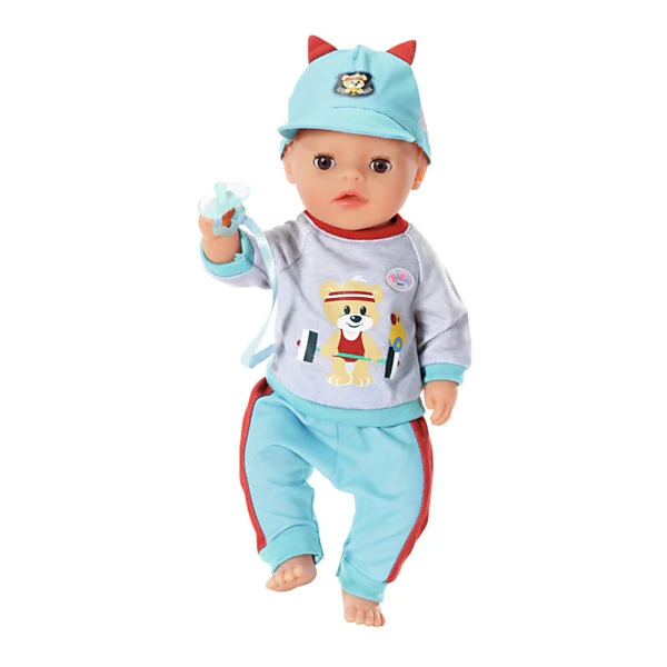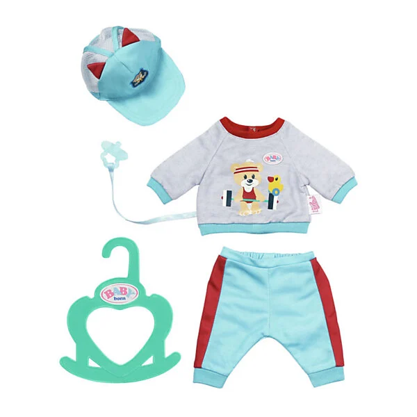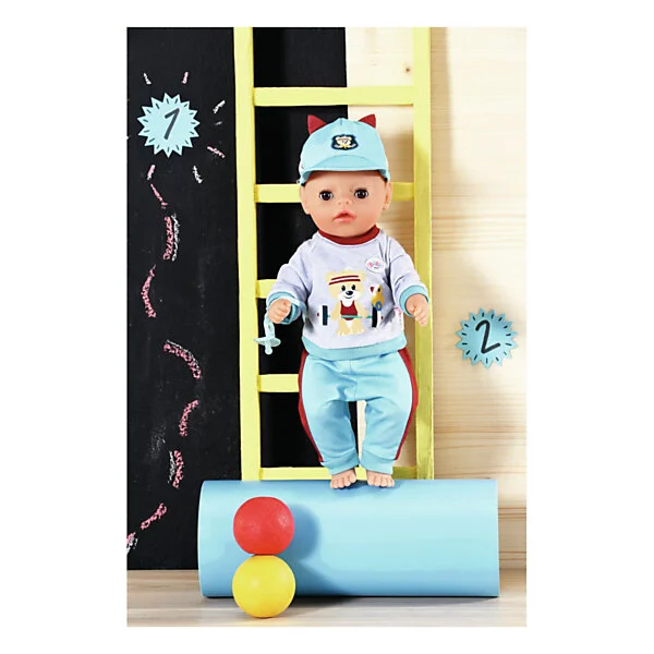 BABY born Little Sportieve outfit blauw (36 cm) met shirt, broek en pet. Inclusief speen en kledinghanger.