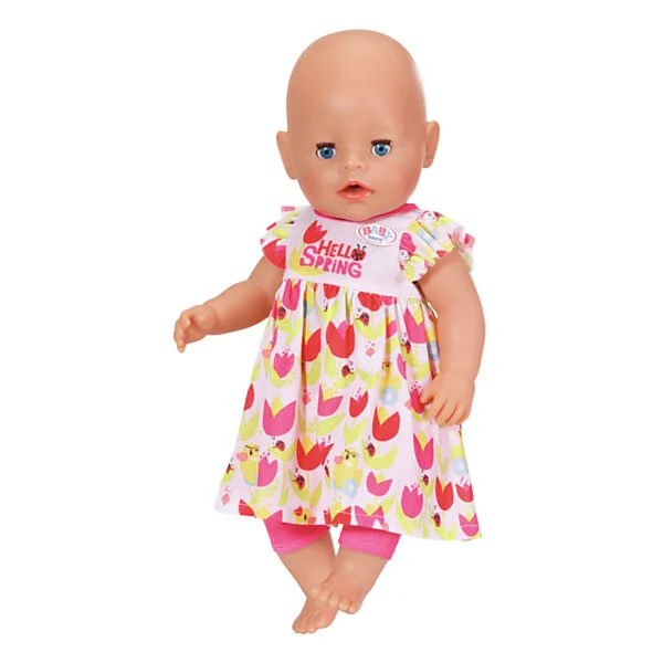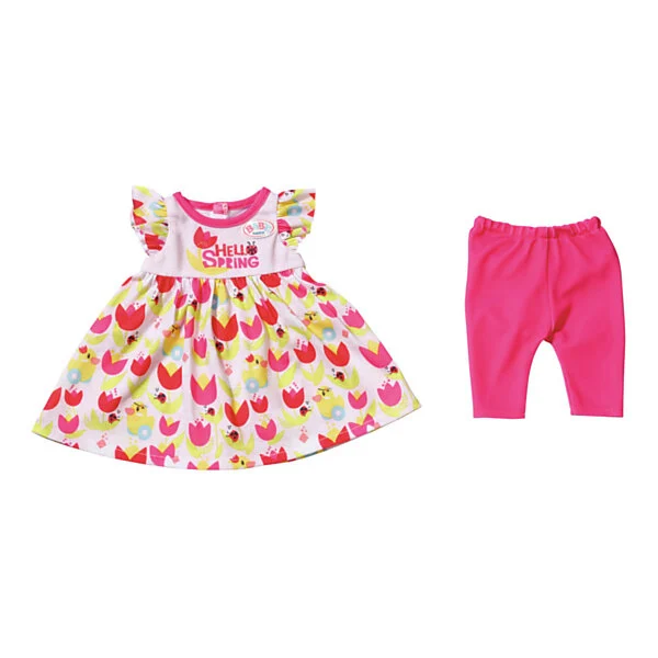 Voor de warmere maanden heeft BABY born twee luchtige jurken: een bloemenjurk met mouwen met ruches voor de lente en een roze jurk met schattige print voor de zomer.