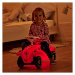 Maar het is niet alleen de lichtfunctie die het nieuwe Lumi-model tot iets heel bijzonders maakt; het populaire ontwerp uit de jaren ’70 krijgt ook veel blikken van andere weggebruikers. Tegelijkertijd blijven de behoeften van kleine bestuurders in dit model niet achter: de vorm van de populaire BIG Bobby-Car Classic blijft natuurlijk ongewijzigd en de carrosserie en het stuur van de populaire kinderauto zijn perfect ergonomisch ontworpen voor kinderen, en er is ook een knievorm voor oudere kinderen.