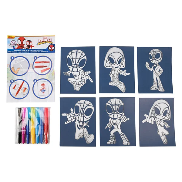 Maak een mooie tekening van Spidey en zijn vriendjes. Door de sjablonen te gebruiken maak je een mooie tekening, zonder dat je buiten de lijntjes kleurt! Blaas je tekening op papier dankzij deze handige pennen.
