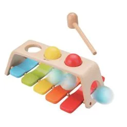 De hamerbank stimuleert de motoriek en maakt kinderen bewust van oorzaak-gevolgrelaties. De xylofoon zorgt voor creativiteit in het maken van muziek. Inclusief hamer en 3 ballen. Geschikt voor kinderen vanaf 12 maanden.