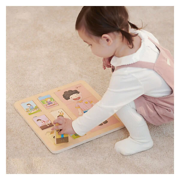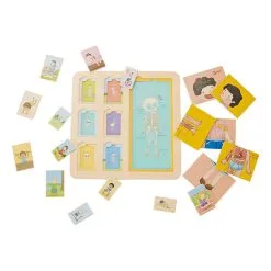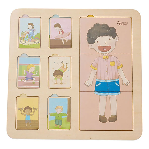 Deze originele houten puzzel wakkert de nieuwsgierigheid van kinderen aan. Wat zit er in mijn buik? Wat gebeurt er als ik beweeg? Aan de hand van mooie en sportieve illustraties ontdekt je kind laag voor laag hoe een lichaam werkt. De compacte puzzelstukken zijn makkelijk vast te houden voor jonge kinderen.