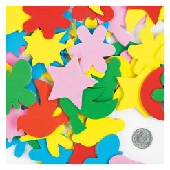 • WAT JE KRIJGT: Een set van 54 zelfklevende leuke schuimvormen, bevat 6 elk van de volgende: libel, bloem, maan, zon, blad, vlinder, ster, wolk en vogel.