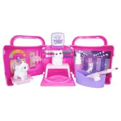 De salon set bevat 2 Washimals dieren en 3 viltstiften met ultra-schone en uitwasbare inkt voor de beste resultaten. Daarnaast bevat de set ook een uitklapbaar salonbordje, uitklapbare tafel voor de spiegel, droogkap, inklikbare kaptafel, badje en schoonmaakborsteltje. Ook andere Crayola afwasbare viltstiften zijn te gebruiken om de Washimals dieren in te kleuren. Verzamel ze allemaal!