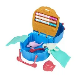 UITGEBREIDE SET: Bevat een speelset, 2 afwasbare Washimals dieren in pastelkleuren, 3 afwasbare viltstiften, schoonmaakborsteltje en sprayende schelp.