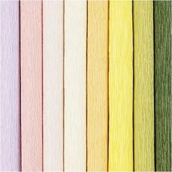 Er zijn veel verschillende technieken die u kunt gebruiken met crêpepapier, dat op talloze manieren kan worden uitgerekt, gevormd en gevouwen. Hierdoor is het mogelijk om een grote variatie aan crêpepapier bloemen, bladeren, decoraties etc. te maken. Om glitter op de randen te lijmen of bloemstelen te bedekken adviseren wij Multi Glue te gebruiken. Om grotere bladeren te lijmen of waar het praktisch is om de creatie direct te laten drogen, wordt een lage temperatuur lijmpistool aanbevolen, zodat het papier niet smelt.