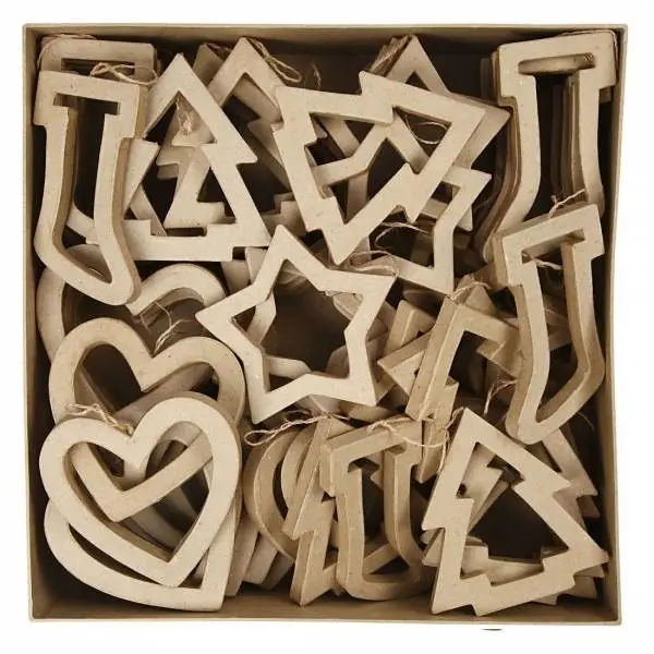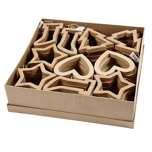 Pak met 4 verschillende designs, met in totaal 60 hangers om zelf te versieren. Geleverd in een displaydoos.