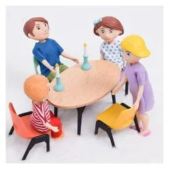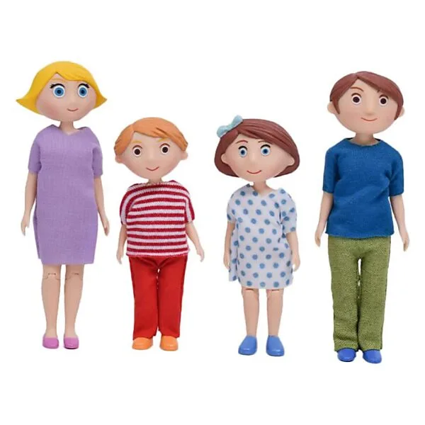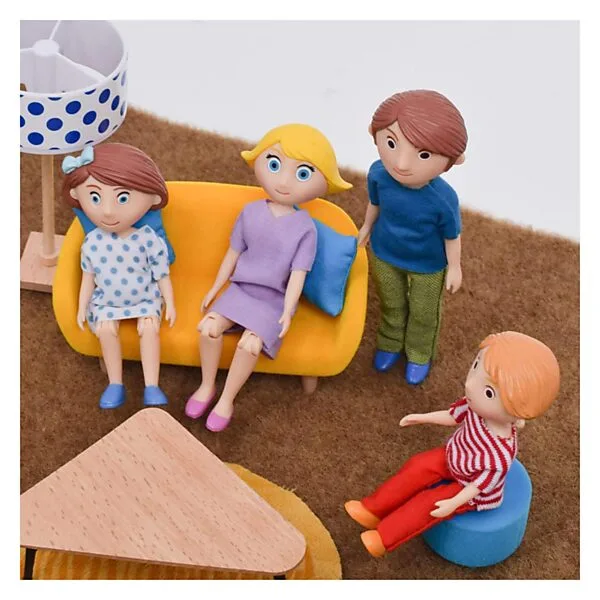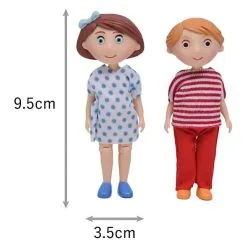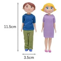 Deze set behoort tot de ‘Mon petit home’-serie, ze zijn dan ook te combineren met de poppenhuizen en poppenmeubels van Djeco. De ouders zijn 11,5 cm lang en de kinderen 9,5 cm.