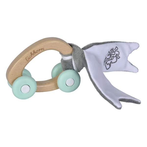 Dit schattige autootje is gemaakt van verschillende materialen: de auto zelf is van hout, de wielen van rubber en het doekje is een pluche stof. Het is 100% FSC gecertificeerd beukenhout. Dankzij de verschillende materialen is het fijn om te voelen te ontdekken voor een baby.