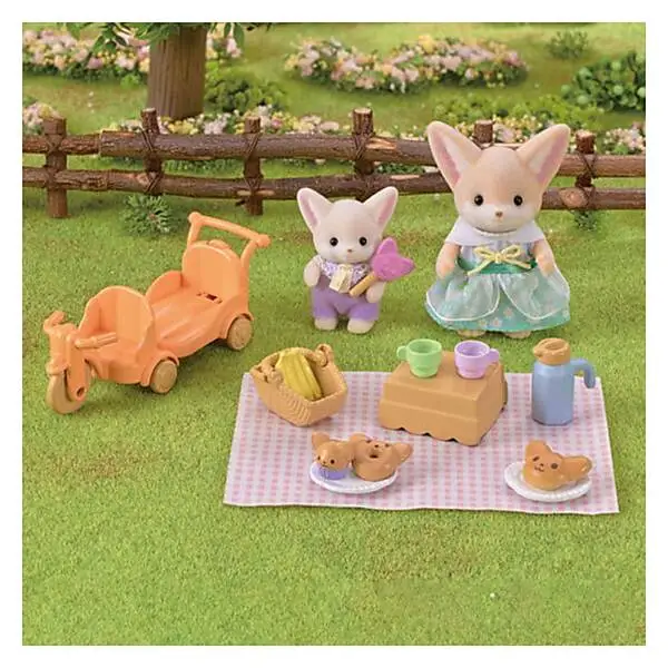 Set met woestijn vos meisje Jasmine en broertje Caleb, een fietskar en picknickspullen.