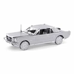 Dit model van het 1965 Ford Mustang Coupe vliegtuig bestaat uit twee metalen vellen met onderdeeltjes en een gedetailleerde bouwtekening.