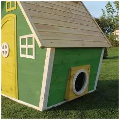 De speelhuisjes van EXIT Toys zijn gemaakt van FSC® gecertificeerd cederhout (FSC 100%, FSC® SCS-COC-007799). Deze houtsoort splintert niet en is van nature bestand tegen weersinvloeden zoals regen en dus resistent tegen houtrot. Je hoeft EXIT houten speelhuisjes voor gebruik niet te behandelen, kinderen kunnen er direct veilig mee spelen.