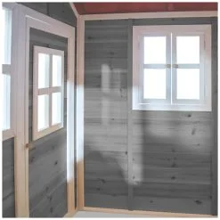 De speelhuisjes van EXIT Toys zijn gemaakt van FSC® gecertificeerd cederhout (FSC 100%, FSC® SCS-COC-007799). Deze houtsoort splintert niet en is van nature bestand tegen weersinvloeden zoals regen en dus resistent tegen houtrot. Het EXIT Loft 100 speelhuis heeft daarnaast een waterdicht bitumen dak, waardoor kinderen er in weer en wind mee kunnen spelen. Je hoeft EXIT houten speelhuisjes voor gebruik niet te behandelen, kinderen kunnen er direct veilig mee spelen.