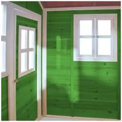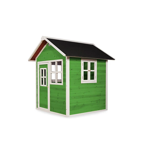 De speelhuisjes van EXIT Toys zijn gemaakt van FSC® gecertificeerd cederhout (FSC 100%, FSC® SCS-COC-007799). Deze houtsoort splintert niet en is van nature bestand tegen weersinvloeden zoals regen en dus resistent tegen houtrot. Het EXIT Loft 100 speelhuis heeft daarnaast een waterdicht bitumen dak, waardoor kinderen er in weer en wind mee kunnen spelen. Je hoeft EXIT houten speelhuisjes voor gebruik niet te behandelen, kinderen kunnen er direct veilig mee spelen.