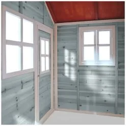 De speelhuisjes van EXIT Toys zijn gemaakt van FSC® gecertificeerd cederhout (FSC 100%, FSC® SCS-COC-007799). Deze houtsoort splintert niet en is van nature bestand tegen weersinvloeden zoals regen en dus resistent tegen houtrot. Het EXIT Loft 150 speelhuis heeft daarnaast een waterdicht bitumen dak, waardoor kinderen er in weer en wind mee kunnen spelen. Je hoeft EXIT houten speelhuisjes voor gebruik niet te behandelen, kinderen kunnen er direct veilig mee spelen.