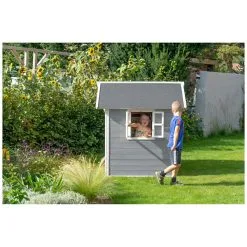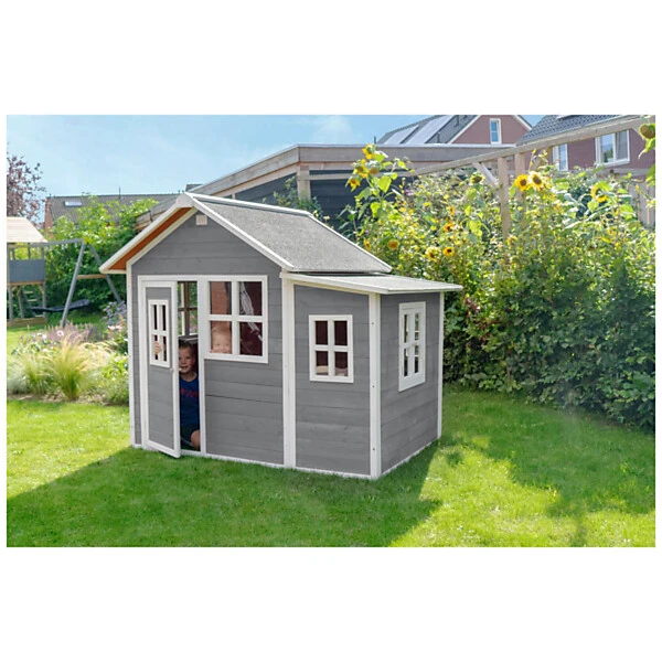 De speelhuisjes van EXIT Toys zijn gemaakt van FSC® gecertificeerd cederhout (FSC 100%, FSC® SCS-COC-007799). Deze houtsoort splintert niet en is van nature bestand tegen weersinvloeden zoals regen en dus resistent tegen houtrot. Het EXIT Loft 150 speelhuis heeft daarnaast een waterdicht bitumen dak, waardoor kinderen er in weer en wind mee kunnen spelen. Je hoeft EXIT houten speelhuisjes voor gebruik niet te behandelen, kinderen kunnen er direct veilig mee spelen.
