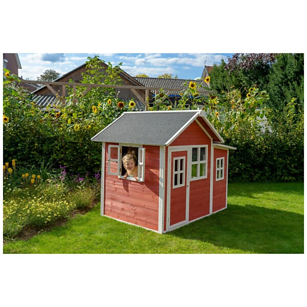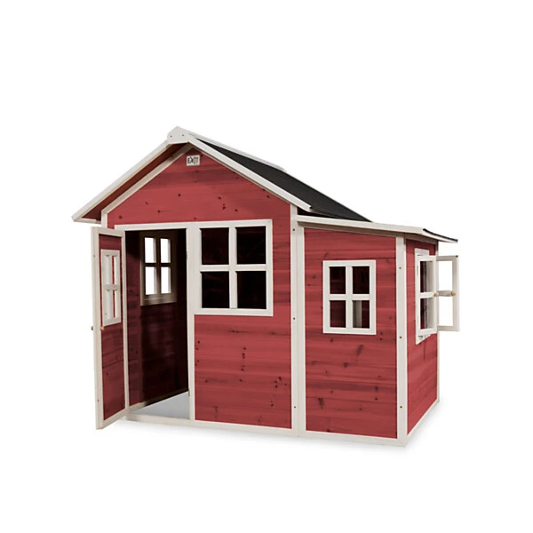 De speelhuisjes van EXIT Toys zijn gemaakt van FSC® gecertificeerd cederhout (FSC 100%, FSC® SCS-COC-007799). Deze houtsoort splintert niet en is van nature bestand tegen weersinvloeden zoals regen en dus resistent tegen houtrot. Het EXIT Loft 150 speelhuis heeft daarnaast een waterdicht bitumen dak, waardoor kinderen er in weer en wind mee kunnen spelen. Je hoeft EXIT houten speelhuisjes voor gebruik niet te behandelen, kinderen kunnen er direct veilig mee spelen.