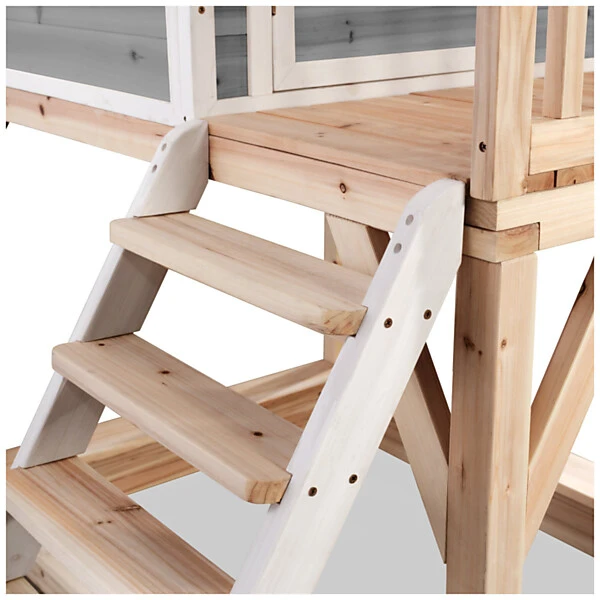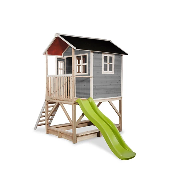De speelhuisjes van EXIT Toys zijn gemaakt van FSC® gecertificeerd cederhout (FSC 100%, FSC® SCS-COC-007799). Deze houtsoort splintert niet en is van nature bestand tegen weersinvloeden zoals regen en dus resistent tegen houtrot. Het EXIT Loft 500 speelhuis heeft daarnaast een waterdicht bitumen dak, waardoor kinderen er in weer en wind mee kunnen spelen. Je hoeft EXIT houten speelhuisjes voor gebruik niet te behandelen, kinderen kunnen er direct veilig mee spelen.