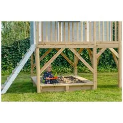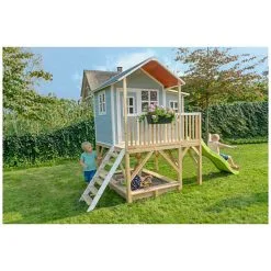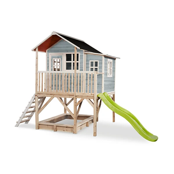 De speelhuisjes van EXIT Toys zijn gemaakt van FSC® gecertificeerd cederhout (FSC 100%, FSC® SCS-COC-007799). Deze houtsoort splintert niet en is van nature bestand tegen weersinvloeden zoals regen en dus resistent tegen houtrot. Het EXIT Loft 550 speelhuis heeft daarnaast een waterdicht bitumen dak, waardoor kinderen er in weer en wind mee kunnen spelen. Je hoeft EXIT houten speelhuisjes voor gebruik niet te behandelen, kinderen kunnen er direct veilig mee spelen.