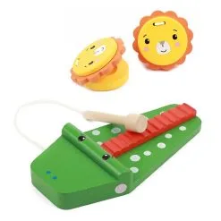 – Bevat 5 instrumenten in de vorm van een dier, x1 xylofoon, x1tamboerijn, x2 castagnetten, x1 guiro.