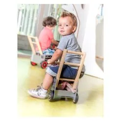 Gemaakt van stevig rubberhout. De banden van de loopauto zijn massief.