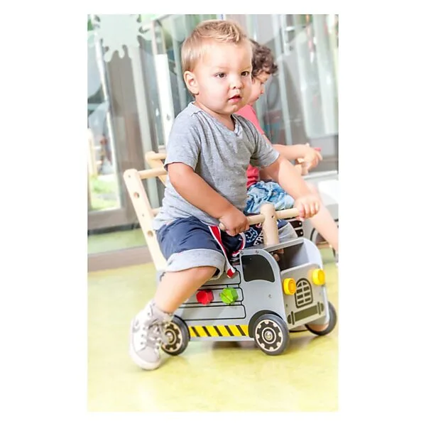 • Houten loopauto met loop-, duw-, en speelfuncties