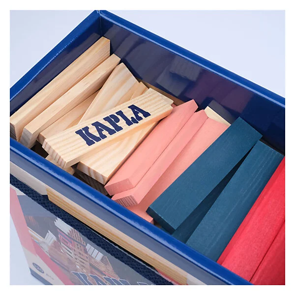Geef uw constructies nog meer reliëf met 120 KAPLA planken. Het vat bevat 90 planken en 3 combinaties van 10 gekleurde planken.