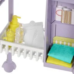 – De set bevat een onderzoekstafel met lotionfles en andere accessoires, een mobiele en twee doorzichtige wiegjes voor de 2 kleine patiëntjes.