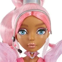 Harmonique heeft prachtig mooi lichtroze haar in een golvende paardenstaart met twee losse, gekrulde felroze haarstrengen. Ze heeft schitterende glazen ogen en echte wimpers, plus fantasierijke make-up compleet met metallic oogschaduw en zwart-witte eyeliner. Harmonique draagt een opvallende top met pofmouwen en een lijfje met metallic glittersteentjes. Haar accessoires zijn een headset, metallic riem, handtas, halsbandje en oorbellen.