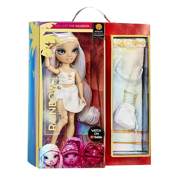 Bekijk de animatieserie op YouTube en Netflix! Zoek op ‘Rainbow High Dolls’. Hier is een tip voor pro’s om de stylinggel te verwijderen. Als je de pop voor het eerst uitpakt, was haar haar dan goed om de stylinggel te verwijderen en laat het haar helemaal opdrogen. Nu kun je het haar borstelen. Voltooi de Pacific Coast High-verzameling door alle 7 Pacific Coast-poppen en bijpassende van kleur veranderende zwembad- en strandspeelset te verzamelen: Finn Rosado, Bella Parker, Simone Summers, Harper Dune, Hali Capri, Margot De Perla en Phaedra Westward. Bezoek de Rainbow High Store om de verbazingwekkende collecties te bekijken en te shoppen. #LETYOURTRUECOLORSSHINE. Alle modepoppen zijn afzonderlijk verkrijgbaar.