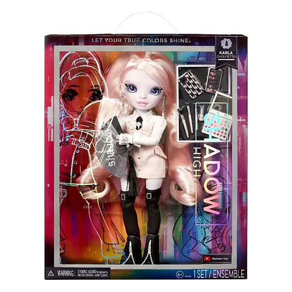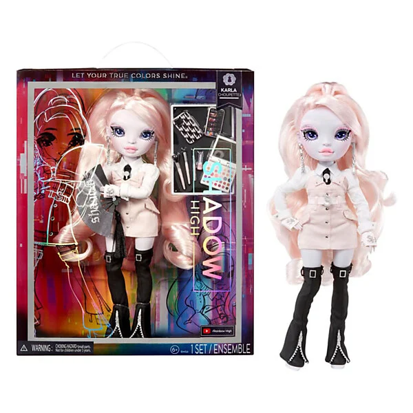 Karla is modeontwerpster. Ze komt met de belangrijkste benodigdheden om ervoor te zorgen dat haar model op tijd op de catwalk komt en haar make-up op heeft: make-uppallet, borstels en schattige mobiele telefoon en houder.