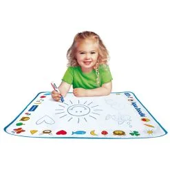 De allereerste tekeningen maak je met Aqua Doodle van Ravensburger. Onbekommerd tekenen zonder kans op geklieder en vlekken. Fantastisch! De stift vullen met leidingwater. Het water maakt blauwe lijnen op de tekenmat en ze verdwijnen als het water opdroogt. Het oefent de fijne motoriek en bevordert de concentratie en creativiteit. Geschikt voor kinderen vanaf 18 maanden.