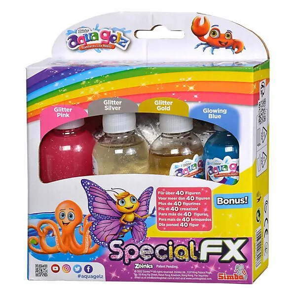 Aqua figuren maak je zelf met een speciale gel. Gebruik een gietvorm naar keuze om te beginnen met je eigen figuurtje. Bij de set zit gelverf die je kunt gebruiken om de gietvorm op te vullen in allerlei kleuren. Maak zo je eigen, creatieve gelpopje. Ben je klaar? Dompel de figuur dan in een bakje water en zie hoe hij vanzelf stevig wordt. Nu kun je het figuurtje uit de vorm halen en gebruiken om mee te spelen of om je kamer mee te versieren. Met een touwtje kun je er een creatieve hanger van maken.