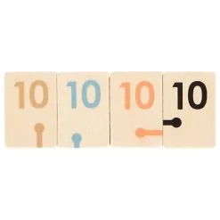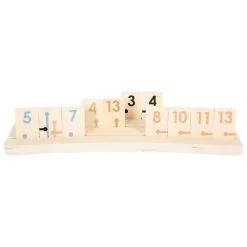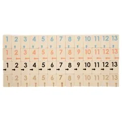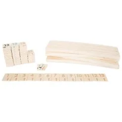 Deze rummi is voor 4 personen gemaakt, er zitten 4 houten plankjes bij de set. Een plankje is 27 cm lang. Zoals bij de traditionele rummi zijn ook bij deze set 4 kleuren stenen die van 1 tot 13 lopen en 2 jokers te vinden. Het recept voor een goed potje rummi!
