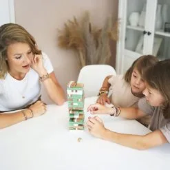 Door de inspanning van voorzichtig een blokje uit de stapel halen met je handen, wordt de oog-handcoördinatie goed op de proef gesteld. Ook komt de fijne motoriek hier aan te pas. Zo wordt de ontwikkeling van het kind spelenderwijs gestimuleerd.