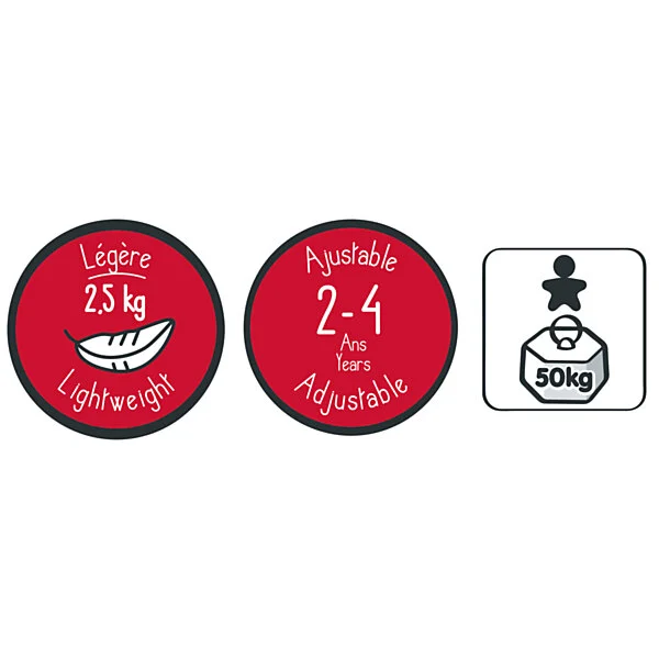 • Verstelbaar in hoogte: stuur 49,5 tot 56 centimeter, zadel 31,5 tot 34 centimeter