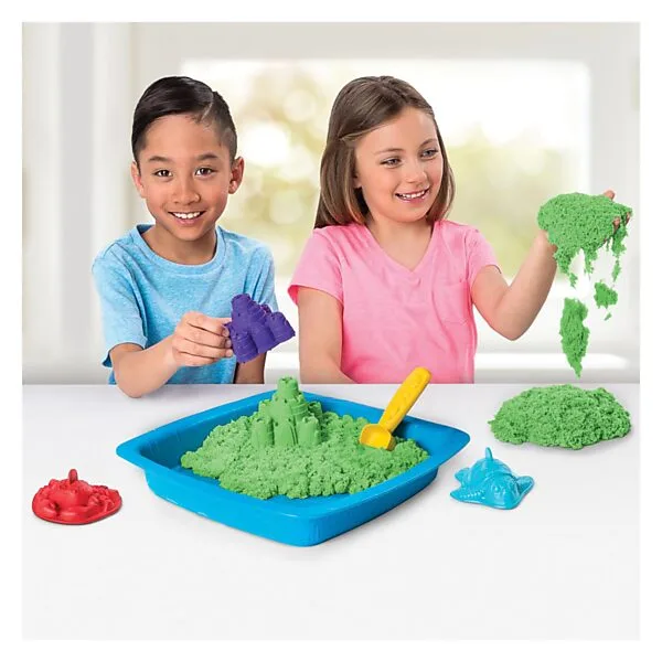 Met de speelzandset kun je het hele jaar door genieten van spelen met zand. De unieke Kinetic Sand-formule maakt het gemakkelijk om alles wat je maar kunt bedenken te vormen. Vorm kastelen, krabben en schildpadden met 454 gram groen Kinetic Sand en gebruik het meegeleverde schepgereedschap om te graven, scheppen en stromen. De speelzandset bevat zelfs een zandlade voor afgesloten spelen, perfect voor binnenshuis. Squish het, snijd het, schep het, vorm het – de creatieve mogelijkheden zijn eindeloos met de speelzandset. Maak opnieuw en opnieuw en laat Kinetic Sand door je handen stromen – het is zo bevredigend, je kunt het niet neerleggen.