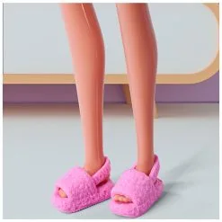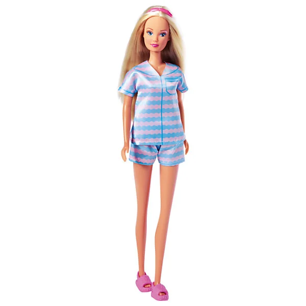 Steffi trakteert zichzelf graag op wat tijd voor zichzelf en heeft een modieuze korte pyjama aangetrokken. Ze draagt ​​ook stoere roze pantoffels. In deze outfit is ze helemaal klaar voor haar verwendagje!