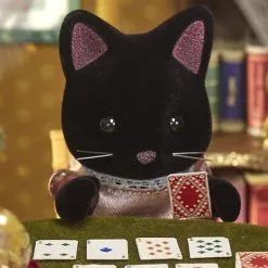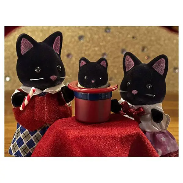 Vader Nachtkat, Moeder Nachtkat, Meisje Nachtkat, Baby Nachtkat in de wieg, zijden hoed (totaal 5 delen)