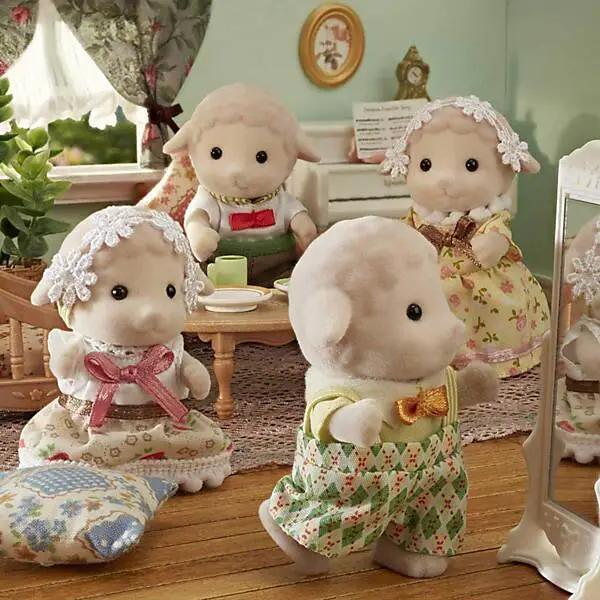 Set van vier figuren: vader schaap Ewan, moeder Barbara, jongen Winton en meisje Lona. De schapenmoeder en het meisje dragen hoofdkapjes. De armen en benen van de figuren kunnen worden bewogen om ze in verschillende poses te zetten. Stimuleert fantasierijk rollenspel voor kinderen.