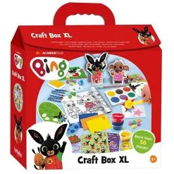 In deze knutselkoffer voor kinderen vind je onder andere neen kleurplaat, waskrijtjes, Bing-figuren met speelmaïs, stickers en klei met vormpjes. Kies jouw favoriete knutselmateriaal of probeer wat nieuws: er is meer dan genoeg keuze!